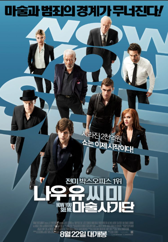 영화 나우 유 씨 미는 2013년 8월 22일 개봉한 영화로 마술을 이용하여 범죄에 사용하는 이야기를 다루고 있다. 감독은 루이스 리터리어가 되겠고 출연 배우로는 제시 아이젠버그, 마크 러팔로, 모건 프리먼 이외 다수가 등장하고 있다.